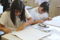家庭科で、ナップサックとトートバックを作成しています。この時間は、作成の一時間目...