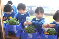 1年生は、ビオラを育てています。ビオラは寒さに強い植物で、この時期にもきれいな花...