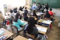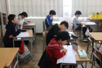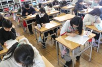 5限、5-1は家庭科。3学期のまとめテストをしました。「生活を支える物やお金」、「暖かい住まい方で快適に」など学習したことを思い出しながら取り組みました。