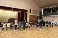 1限、6年は学活で卒業式の練習をしました。今日は、卒業証書を受け取るところを練習しました。返事をして起立、登壇、証書をもらう、移動、着席までの一連の動きを確かめました。