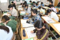 3限、3-1は算数「そろばん」。プリントの問題に取り組みました。そろばんの珠の動かし方にも慣れてきて、教え合いの輪が広がりました。