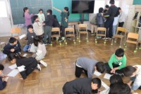 2限、4-1は学活「キラキラ700個記念パーティー」。てつなぎおにやドッジボール、だるまさんが転んだで盛り上がりました。最後に3学期で転校する児童へメッセージを渡したり、記念写真を撮ったりしました。