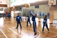 5限、5-1は体育「ソフトバレーボール」。チームでワンバウンドパスの回数を増やす練習をした後、ゲームをしました。ラリーが続くようになってきました。