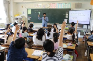 スリランカはインド洋に浮かぶ島国で日本から飛行機で9時間ほどかかること。プラモ先生はスリランカ中央部の出身であることやスリランカのおいしい食べもののことなど、児童の質問にも答えながら楽しく会話しました。