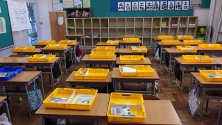 4-1、5-1、6-2の教室です。机、いすが整然と並び、気持ちよく週のスタートが切れそうです。