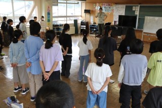 2限、6年は合同音楽、音楽学習発表会へ向けて合唱の練習をしました。