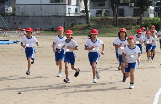 長距離を走るのにふさわしい爽やかな天気の中、持久走記録会を行いました。