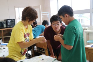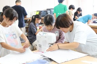 講師の山口先生から縫い方や生地の扱い方を教えていただきながらミシン縫いに挑戦しました。