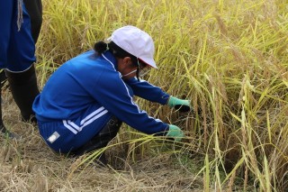 3限、4限、5-1は稲刈りをしました。