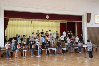 4限、6年生は音楽で音楽学習発表会へ向けステージ練習をしました。
