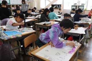 3限、4限、2-1は図工で楽しかったうみがたりの思い出を絵にしました。