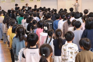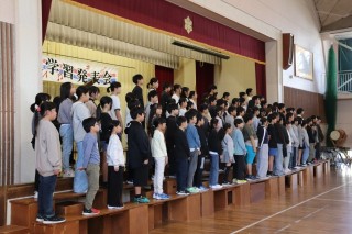 今年の音楽学習発表会は1年生によるオープニングのあいさつと全校合唱からスタートです。