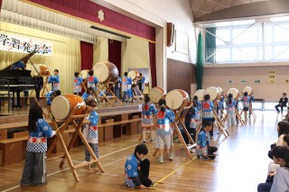 4年生は「パレードホッホー」(斉唱)、「チャレンジ寄せ太鼓」を発表しました。