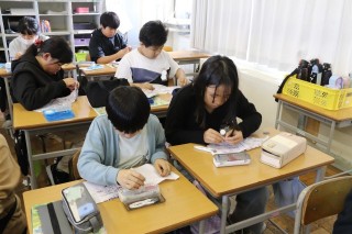 4限、5-1は家庭科「ソーイングはじめの一歩」。