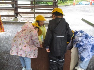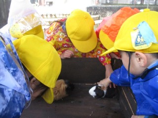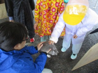 あいにくの雨模様でしたが、悠久山公園の動物園ではウサギとふれあったり、飼育されている動物を見学しました。