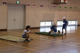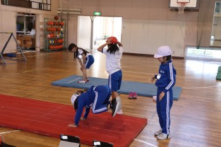 友だちの動きも参考にしながら、マットあそびを楽しみました。