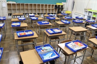 1-1の朝の教室風景です。児童を迎える準備が整っています。