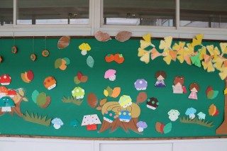 校内の掲示が11月版に変わりました。秋の深まりが感じられる掲示です。