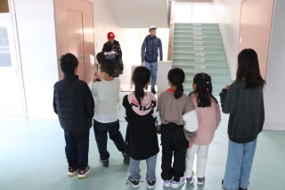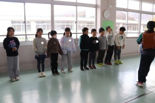 児童玄関、2階、3階とそれぞれに分かれてあいさつをした後、最後は全員が児童玄関前に集まり、あいさつの声かけをしました。