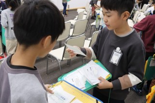 曲間には座席を入れ替えながら、他校の4年生と名刺交換をしました。