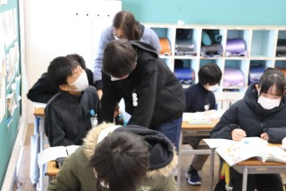 1限、6-1は社会「新しい文化と学問」。