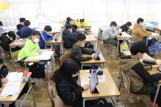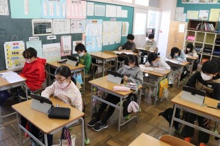 まとめのテストをしました。テストが終わった児童から、漢字ドリルや「和と洋新聞」づくりなど一人一人の学習に取り組みました。