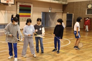 3年生がクラブ見学をしました。バドミントンクラブでは少し体験させてもらいました。