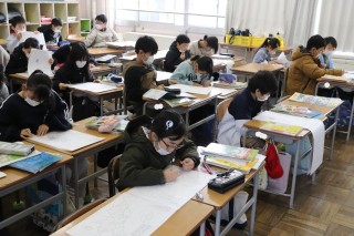 新潟県の位置や新潟県の周りにある都道府県の位置や名前について白地図ワーク学習をしました。