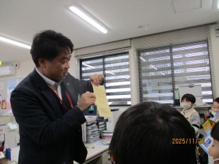 局長さんから郵便局について説明を聞いたり、郵便局のオフィススペースを見学したりできました。