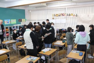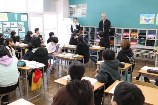 今日は学校教育課の英語担当の方とALTのジョニー先生が参観しました。