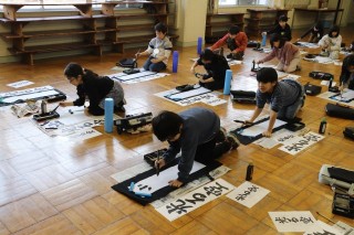 今年は「光る空」を書きます。1回目の練習、お手本を見ながら書きましたが、かなり難しかったようです。