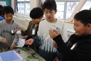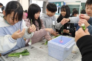 液体窒素に浸した、花や菜っ葉は一瞬にして粉々になることを体験を通して知りました。