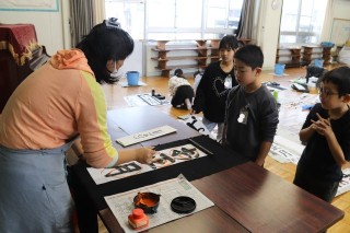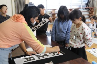 3限、4限、3-1は国語で書き初め指導を受けました。
