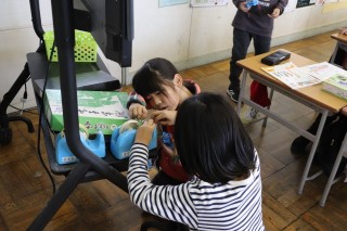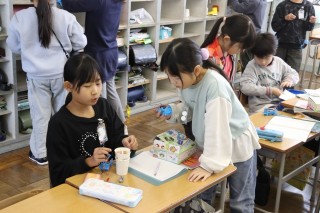 「どのようなものが電気を通すのか」を追究課題に学習を始めました。イスや机、筆箱など、電気を通す派と通さない派が出てきたので、「電気を通すものと通さないもののちがいは」を更なる追究課題として設定し、学習を深めました。