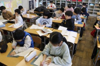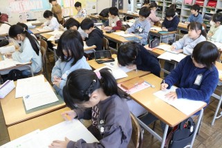 持久走大会や音楽学習発表会、わかくさ祭りなどの行事の他、国語の漢字や算数の計算などでできるようになったことやがんばったことなどを振り返り、自分の気持ちに近い言葉を教科書から探して文章にしました。