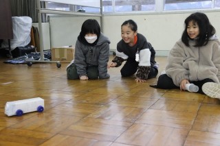 輪ゴムを使ったり、ペットのボトルのキャップをタイヤ代わりに使ったり、動かして遊ぶおもちゃを作ってみんなで楽しみました。