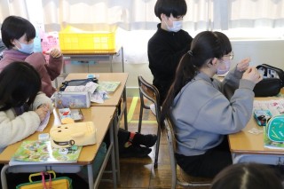 4限、5-1は家庭科「ソーイングはじめの一歩」。