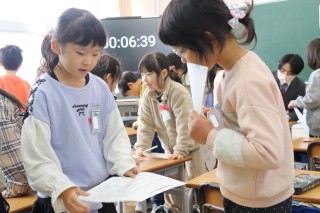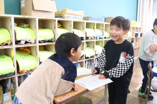 1-1は「冬休みビンゴ」で、友だちに冬休みの思い出について質問し合いました。