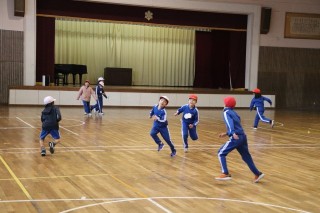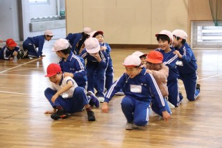 鬼ごっこで体を温めたあと、グループで一列になり、様々な動きを楽しみました。