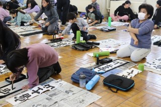 会場の雰囲気に負けず、冬休みの練習の成果を発揮しようと作品作りに集中して取り組む児童がいました。