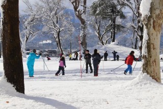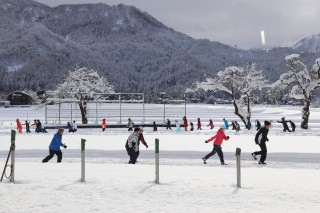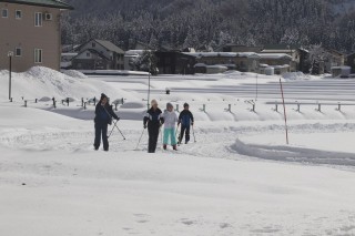 晴天の中、グラウンドで気持ちよく初滑りを楽しむことができました。