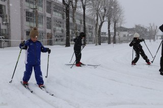 3限、4限、2-1は体育「クロスカントリースキー」。