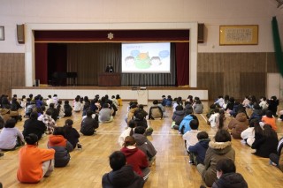 朝、講話朝会がありました。校長先生から「節分」についての話がありました。