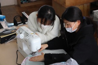 グループで順番にミシンを使いながらエプロンづくりを進めていきました。