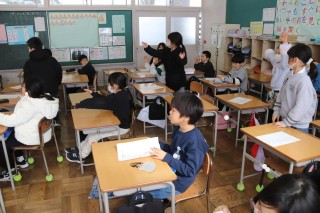 3限、2-1は学活で6年生を送る会に向けて練習をしました。