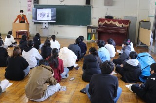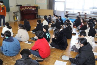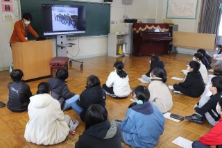 1限、6年は体育で親善スキー大会当日の動きや心構えについて話を聞きました。