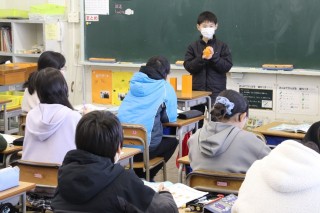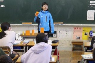 丸くない、四角形ではない、角が6個あるなどの特徴をもとに、どのような立体か考えました。