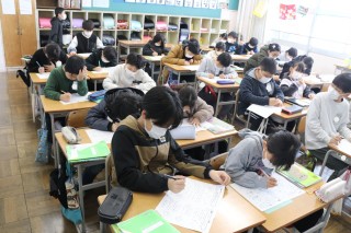 「ものの温まり方」の学習も、金属と水の温まり方の学習まで終え、中間を過ぎたので、復習プリントに取り組みました。