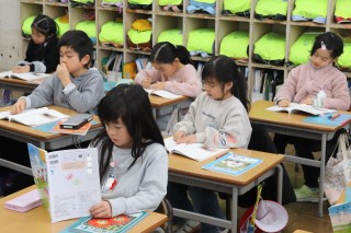 4限、1-1は国語「子どもをまもるどうぶつたち」。