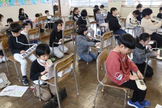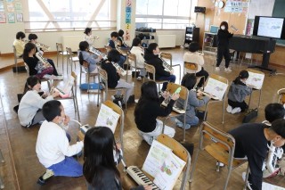 「「こぐまの二月」をけんばんハーモニカでえんそうしよう」を追究課題に学習しました。